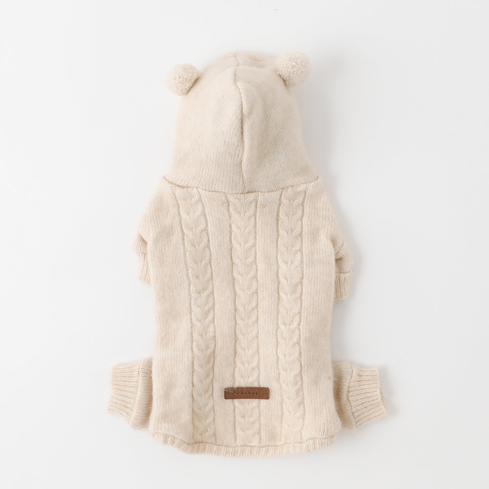Wool -blend cable knit with ears rompers